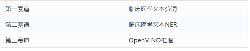 本次竞赛分三个赛道:临床医学文本分词、临床医学文本ner和openvino 推理。