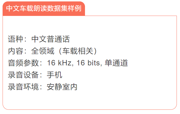该数据集包含了8个小时的中文普通话朗读音频和转写文本,内容为车载环境下的综合语料,包含8480个由38名说话人提供的句子。